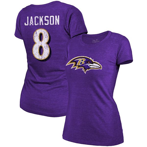 Women S Majestic Threads Lamar Jackson Purple Baltimore Ravens Tri Blend Name Number T Shirt